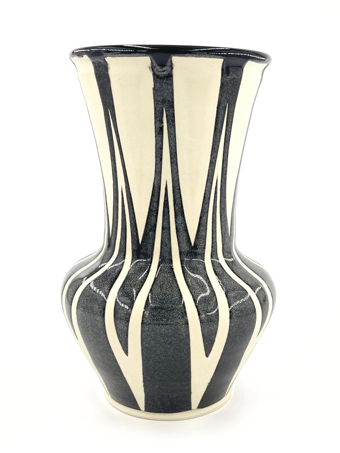 Cut and apply sticky tape shapes to the surface of fired pots to create beautiful contrasting patterns or imagery. Simply stick on, paint over, and peel off for amazing black and white pottery!